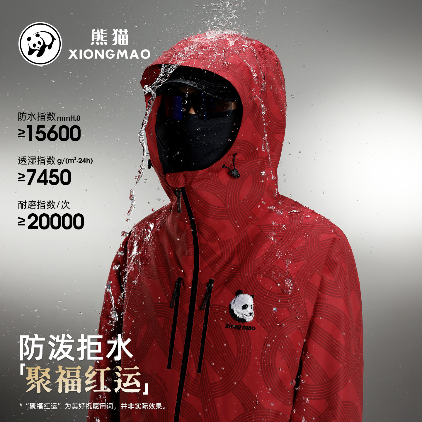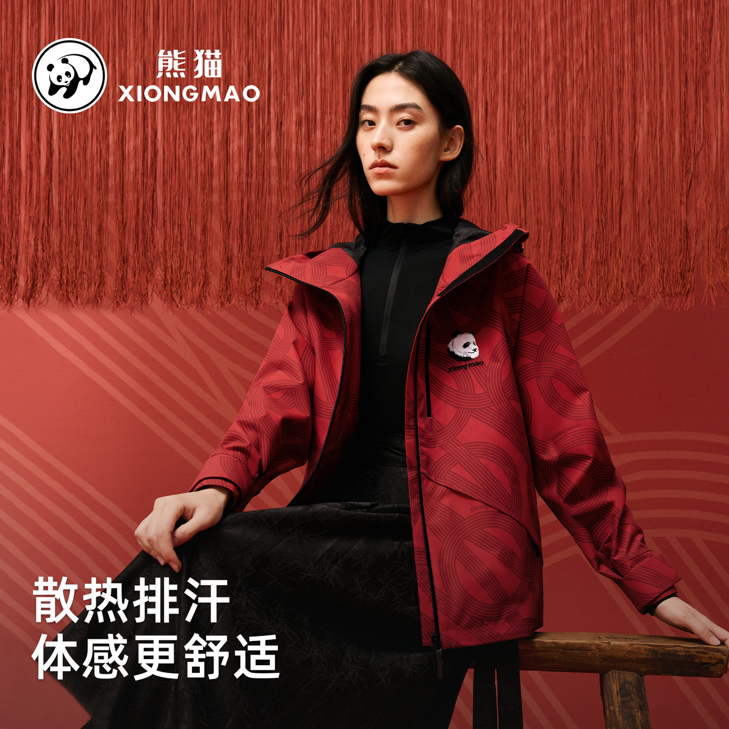 「蜀绣」新春系列熊猫单层冲锋衣外套女2026新款防泼水户外登山服