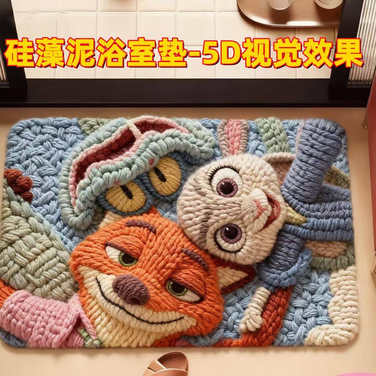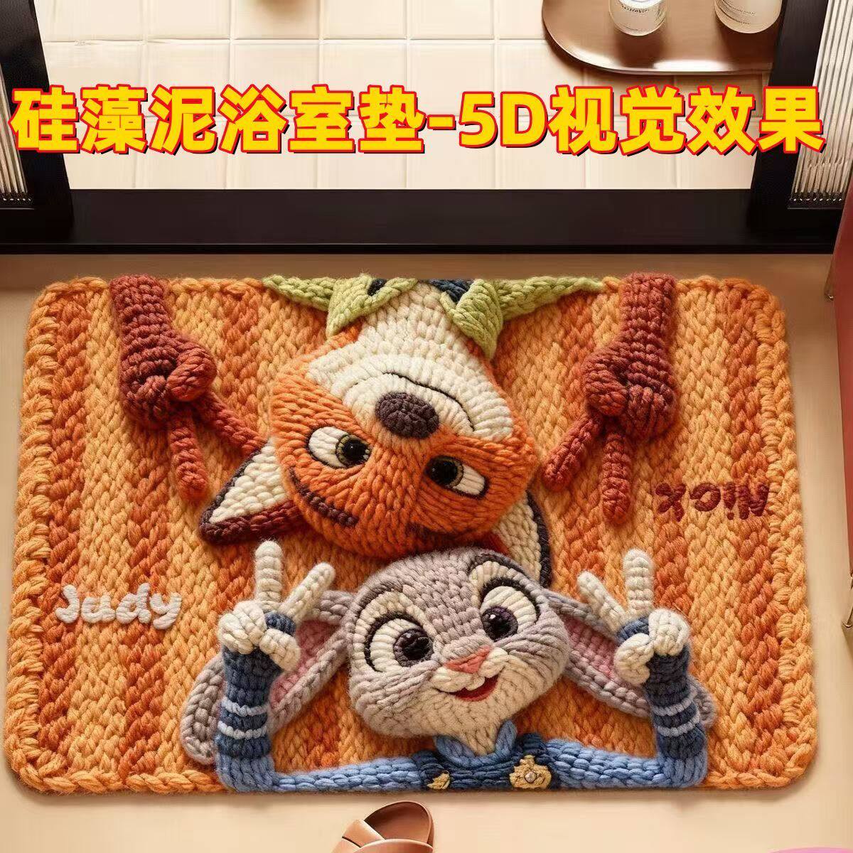 5D立体风硅藻泥浴室地垫卡通可爱卫生间脚垫防滑吸水家用入户门垫