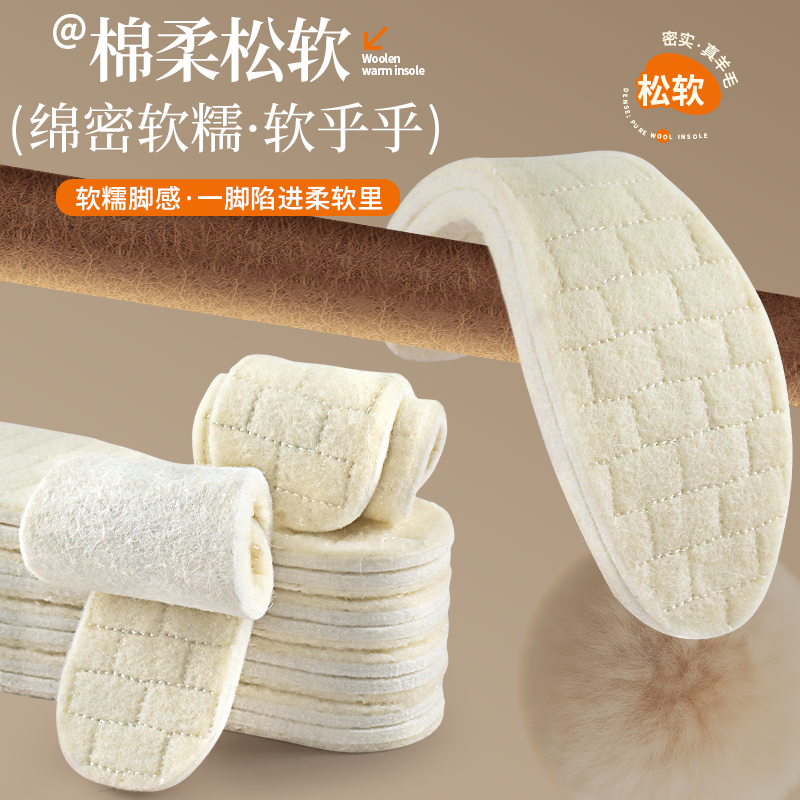 羊毛鞋垫冬季棉鞋垫透气吸汗防臭皮毛仿澳洲羊毛加绒加厚保暖鞋垫