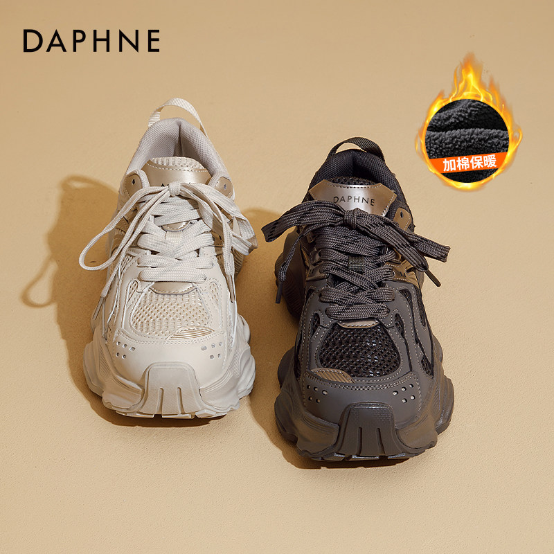 达芙妮灰色老爹鞋女款增高厚底复古2026新款春季休闲百搭运动鞋子