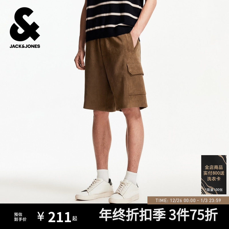 杰克琼斯秋季宽松版型时尚潮流松紧抽绳腰头双侧插袋短裤子男装