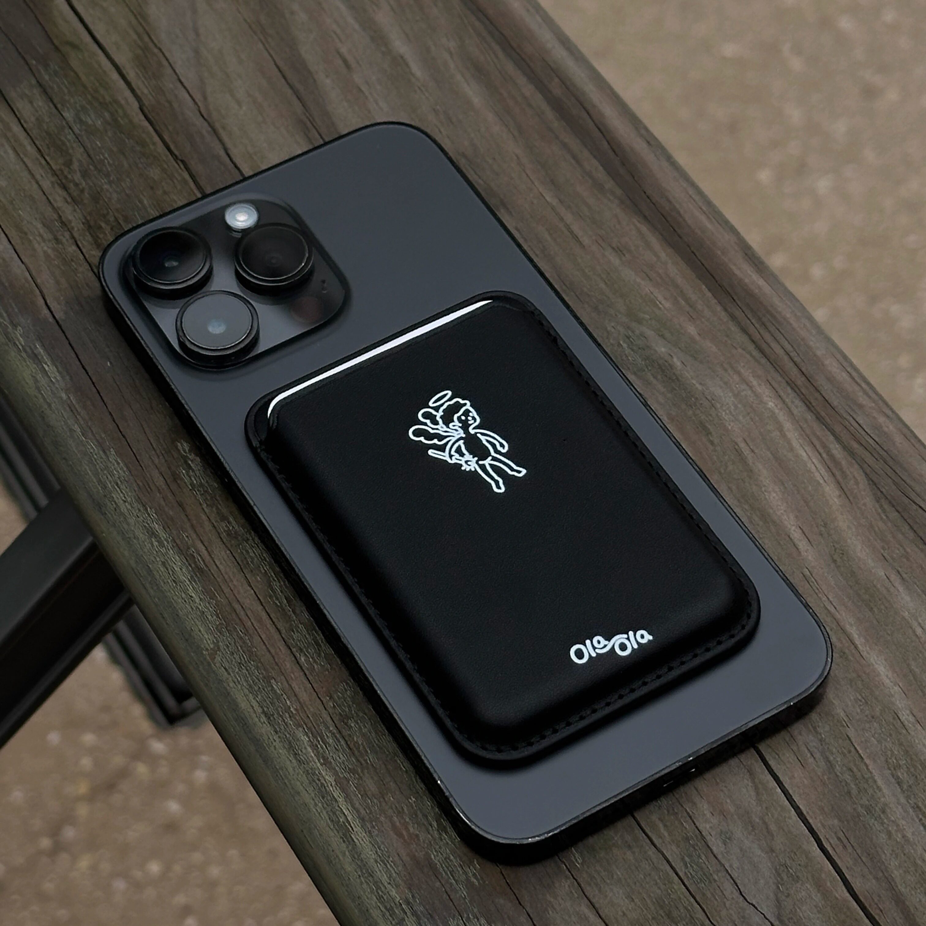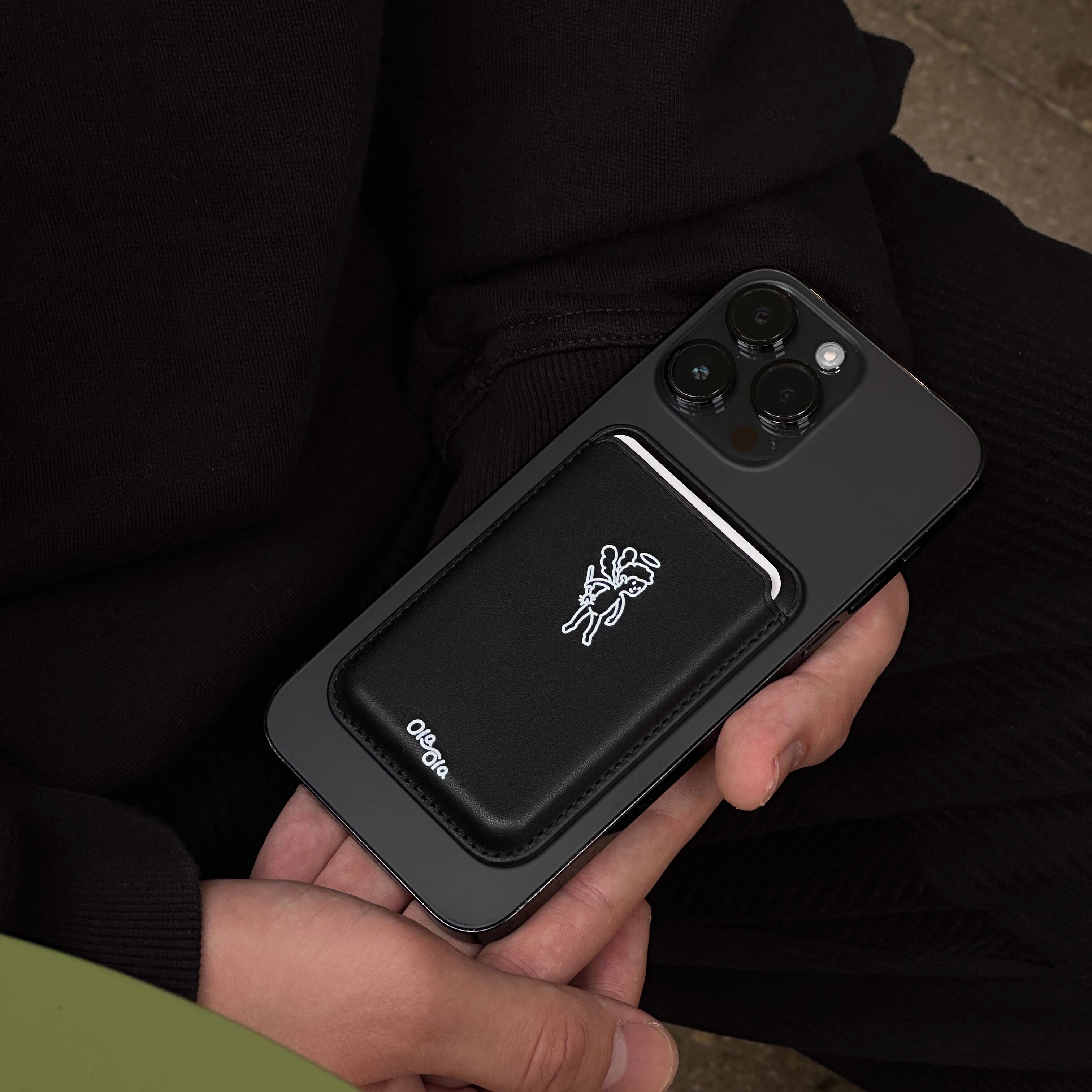 Ola ola| Angel Magsafe|高级感天使pu皮质黑色ins风苹果磁吸卡包
