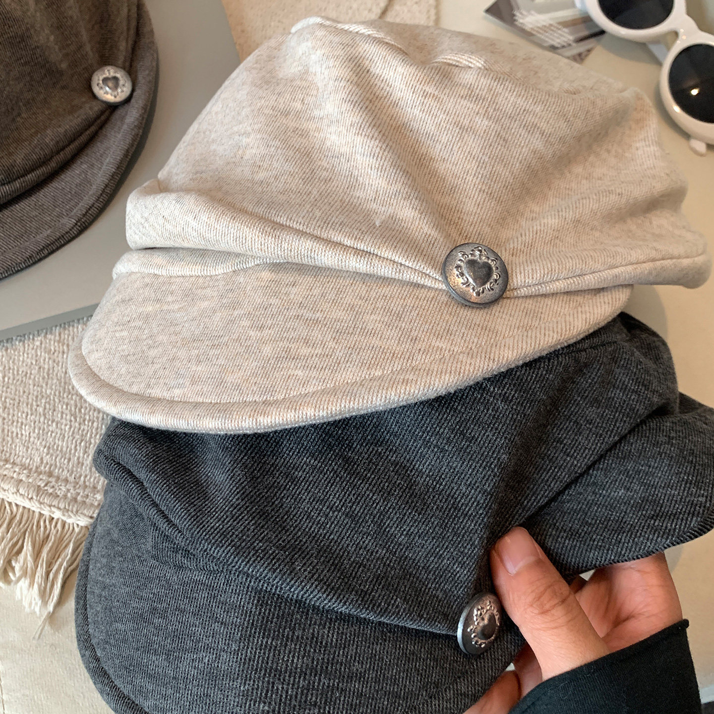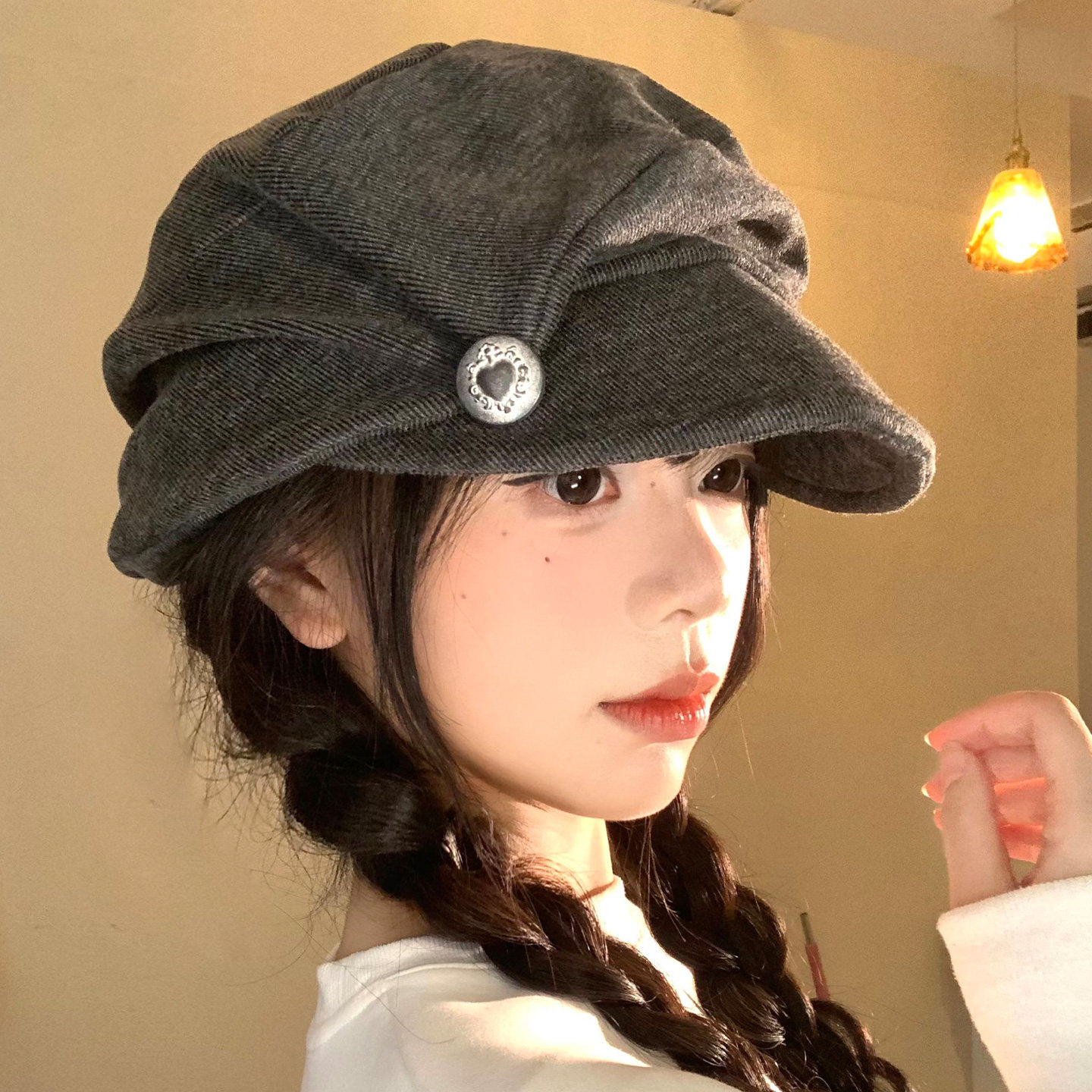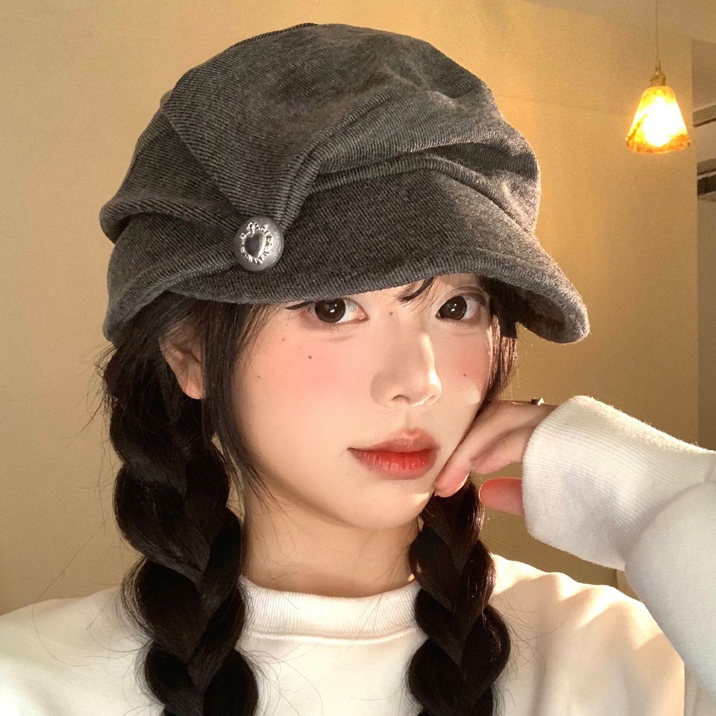 复古褶皱贝雷帽女秋冬季日系显脸小八角帽大头围画家帽子可折叠