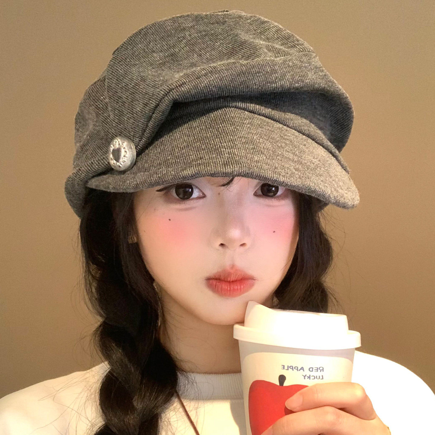 美式复古字母灰色棒球帽女高级感宽檐大头围显脸小百搭鸭舌帽子男