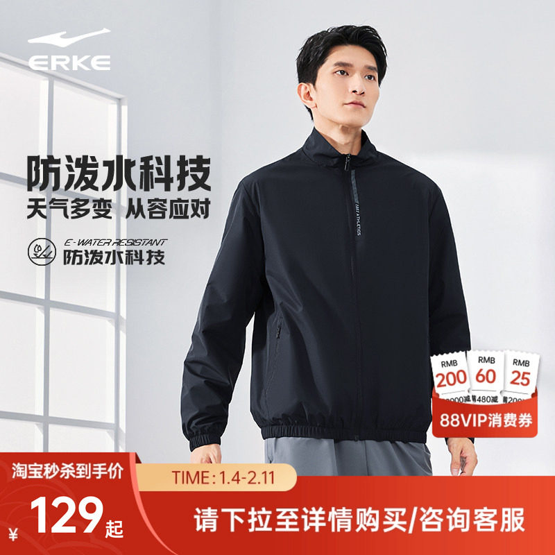 特步防泼水夹克外套男春秋季户外风衣连帽黑色上衣防风运动训练服