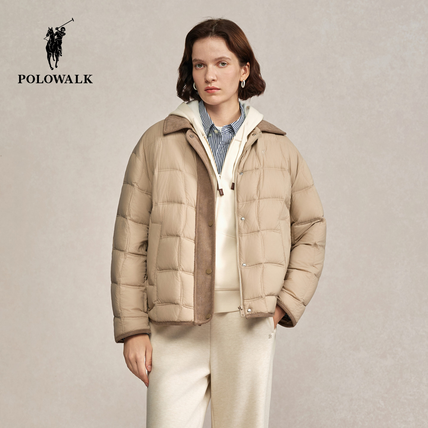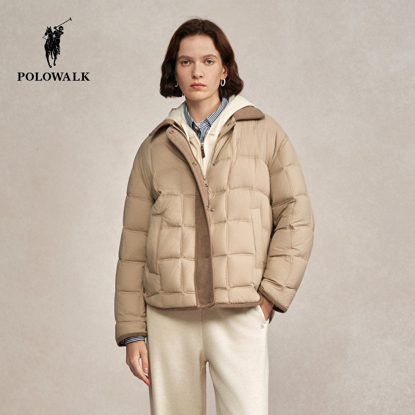 POLOWALK女装羽绒服2025冬装新款女士羽绒服翻领时尚外套保暖上衣