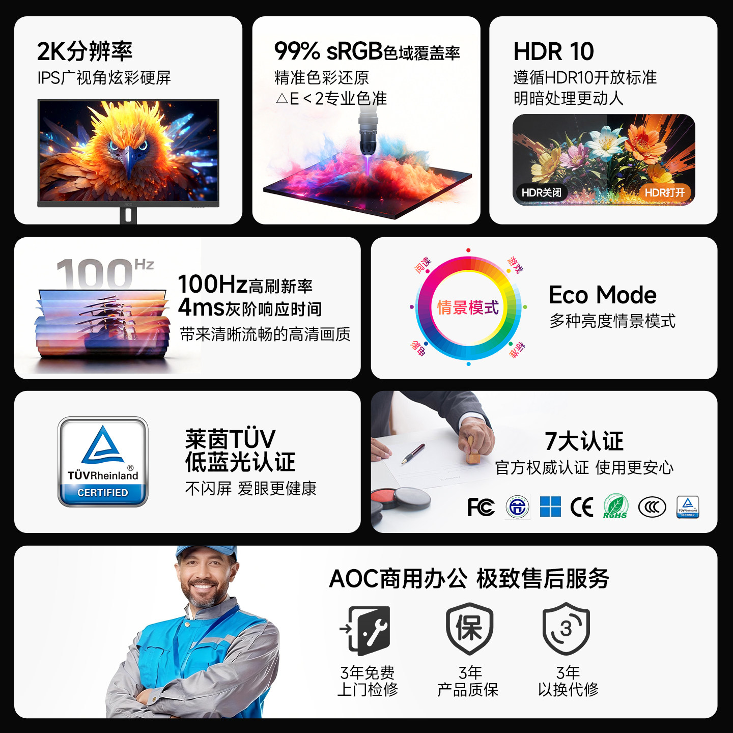 AOC 27英寸2K高清Q27E12办公液晶电脑显示器100HZ笔记本外接屏24
