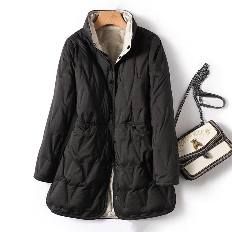 冬季轻薄羽绒服女2025新款小个子中长款大码200斤双面穿薄款外套