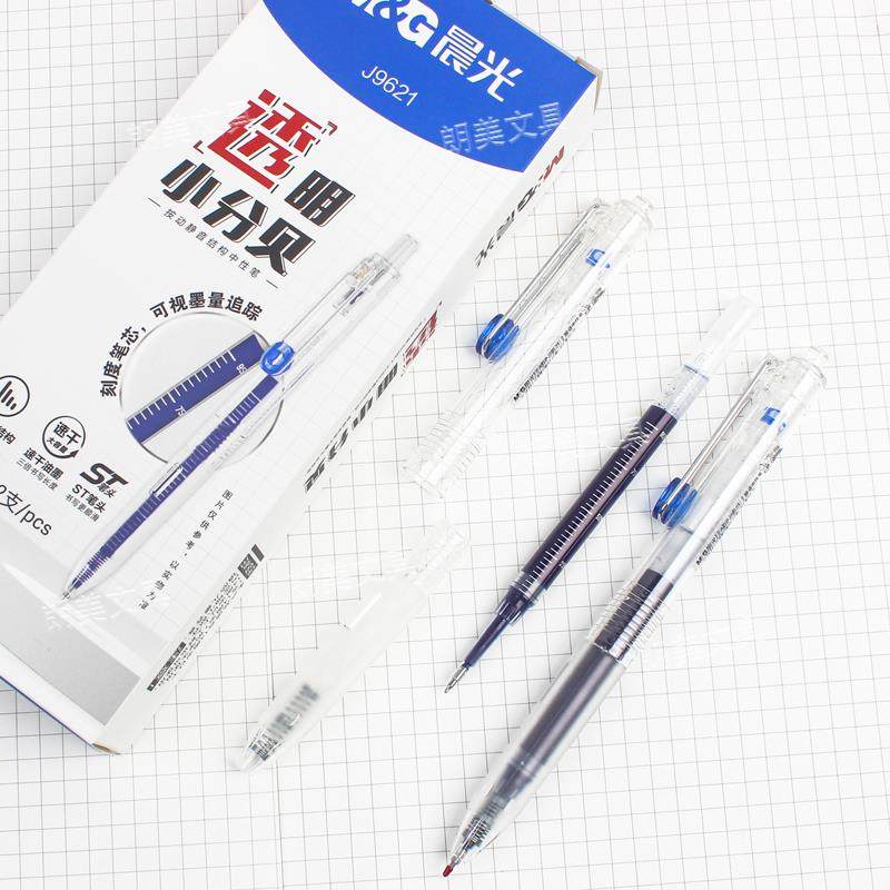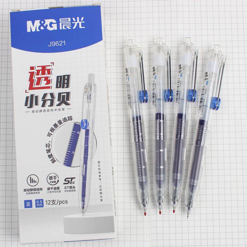 晨光试不可挡透明小分贝静音中性笔黑红蓝ST尖0.5大容量学生J9621