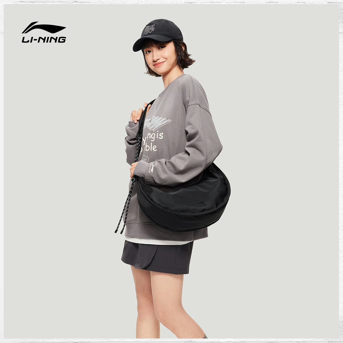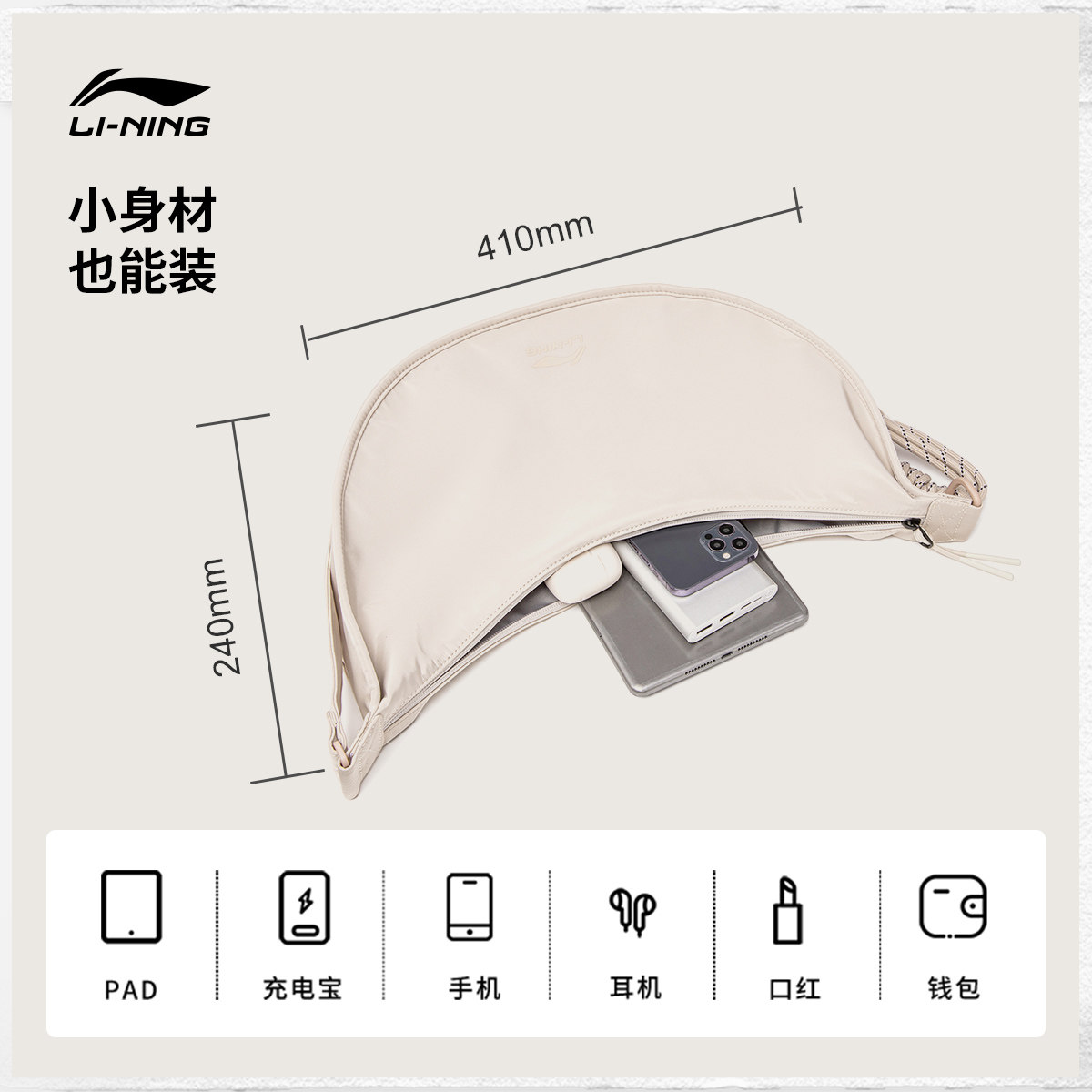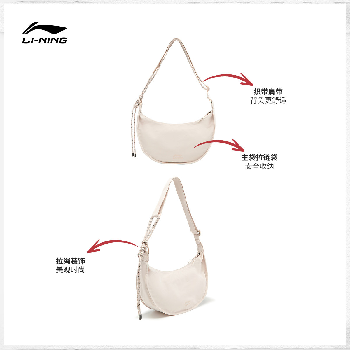 李宁斜挎包女包官方新款便携单肩包学生百搭运动包小挎包月牙包男