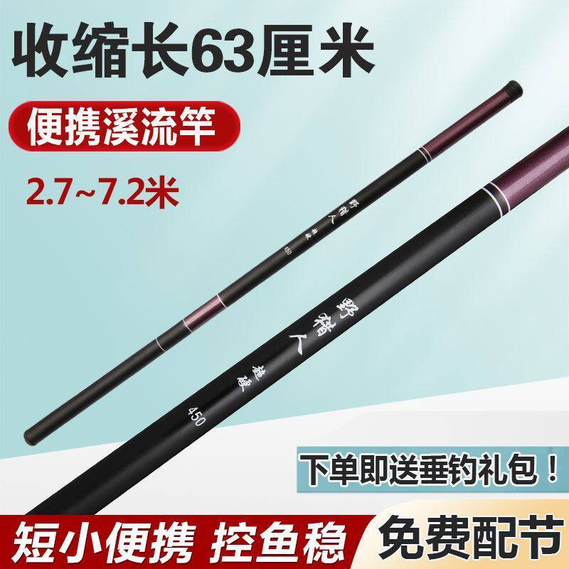 买一送一鱼竿手竿短节溪流鱼竿新手钓鱼工具超轻超硬渔具套装