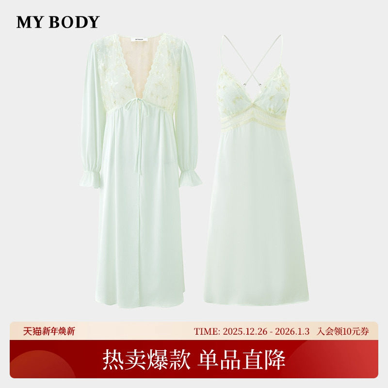 商场同款MYBODY吊带睡裙睡袍高级感刺绣蕾丝带胸垫可外穿家居服女
