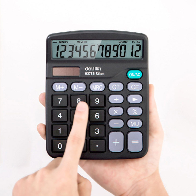 得力计算器办公用会计太阳能学生带语音大学财务小号便携双电源商用计算机文具办公用品大号专用大按键大屏幕
