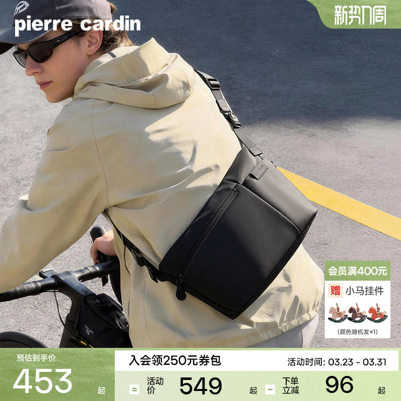 皮尔卡丹男士单肩斜挎包简约休闲包通勤轻便邮差包机能风运动背包