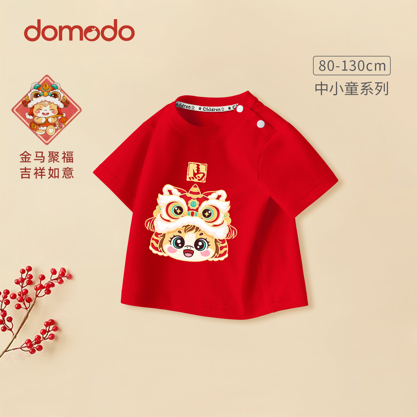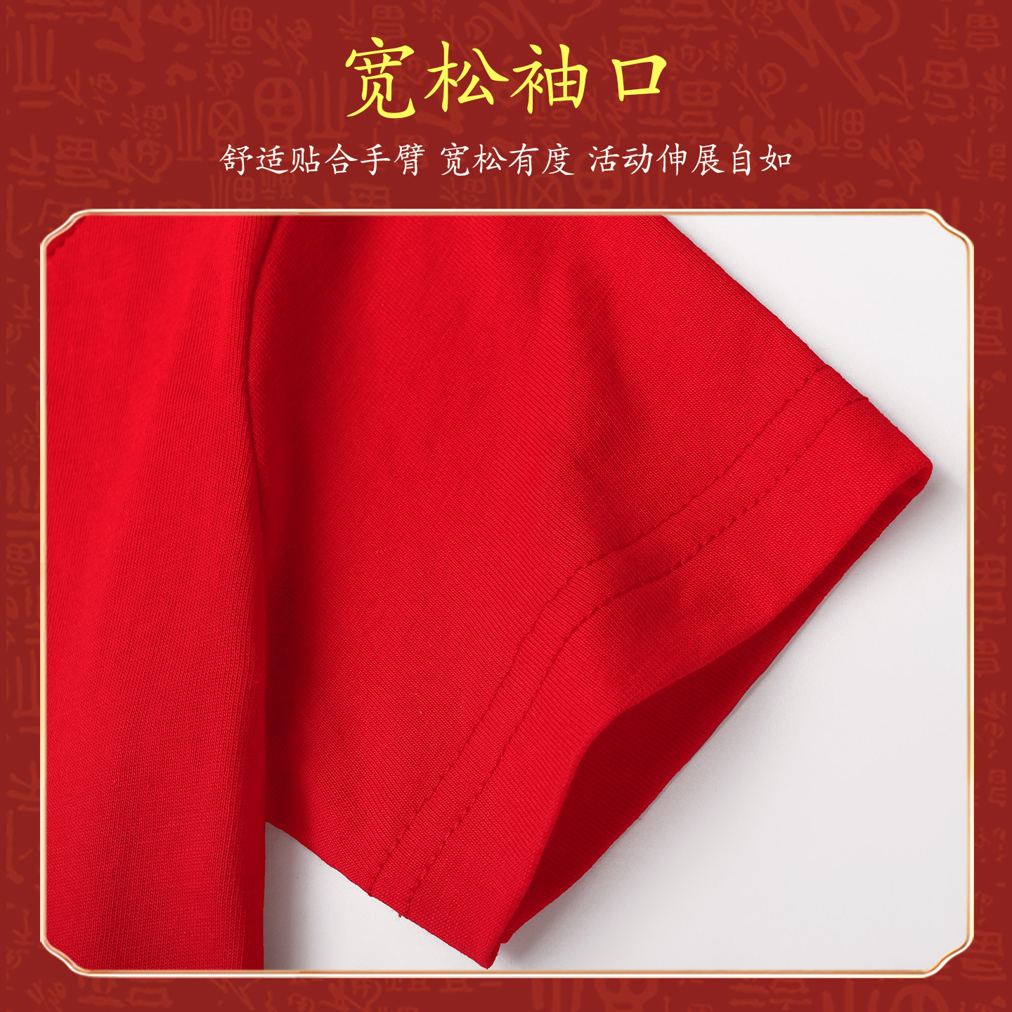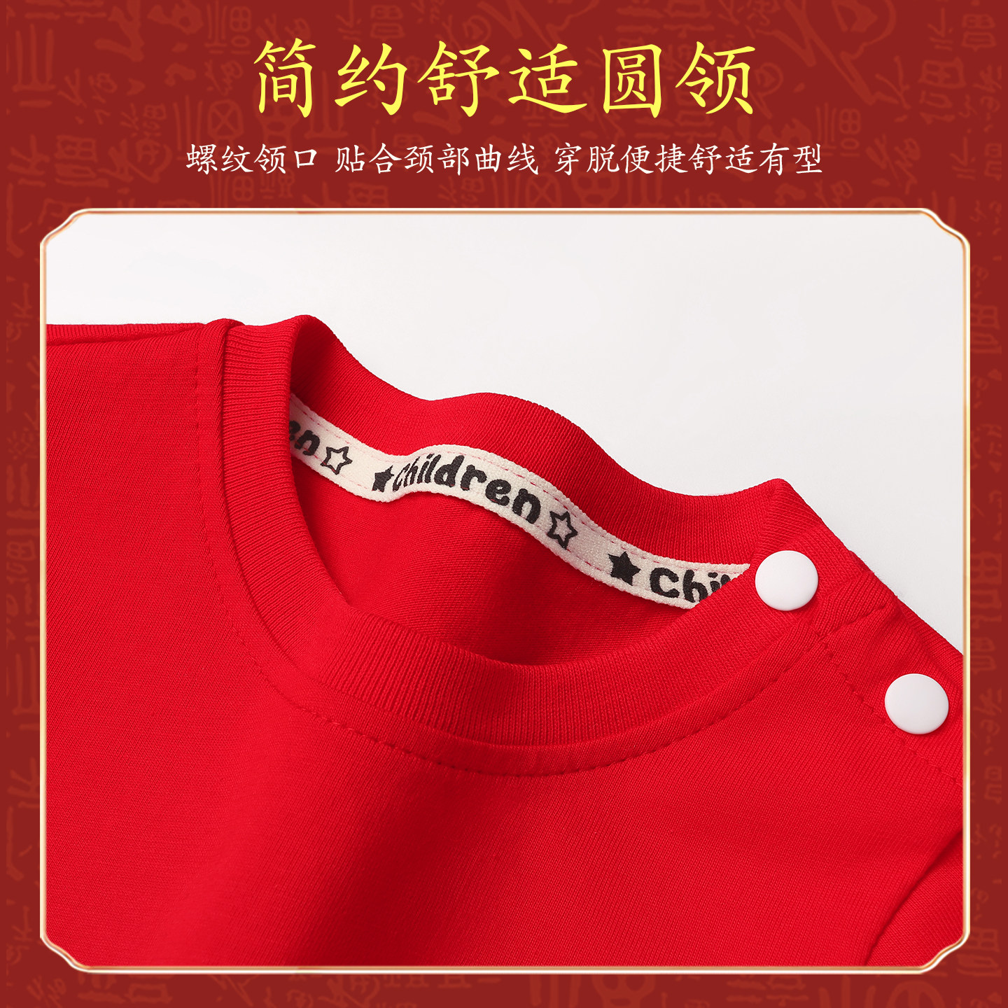 宝宝拜年服短袖2026儿童纯棉新年T恤男女童马年红色唐装喜庆上衣