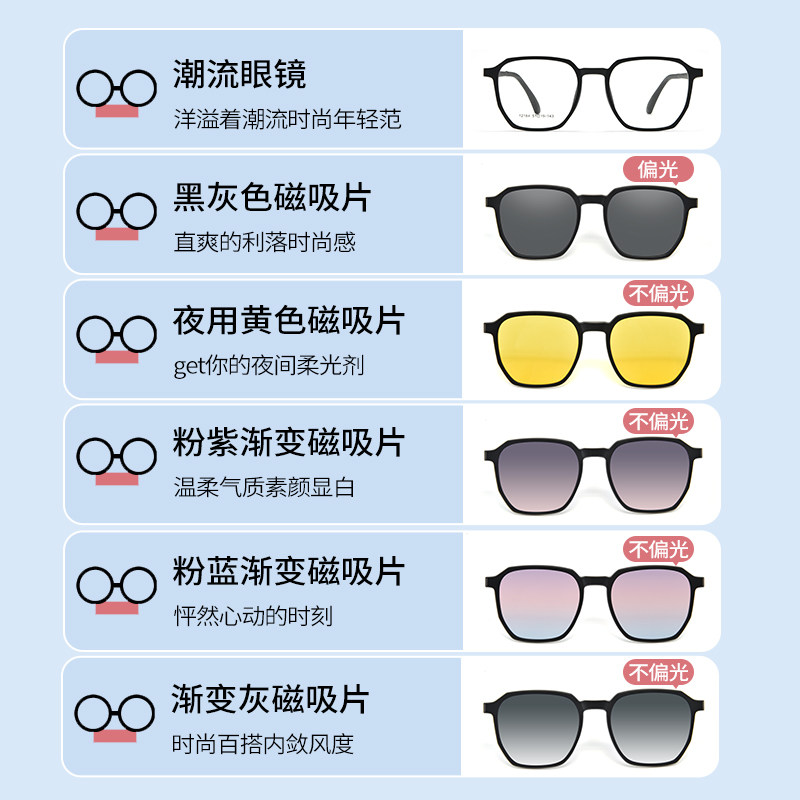 【新品】康视顿多边形近视眼镜框磁吸夹片偏光墨镜套镜12184