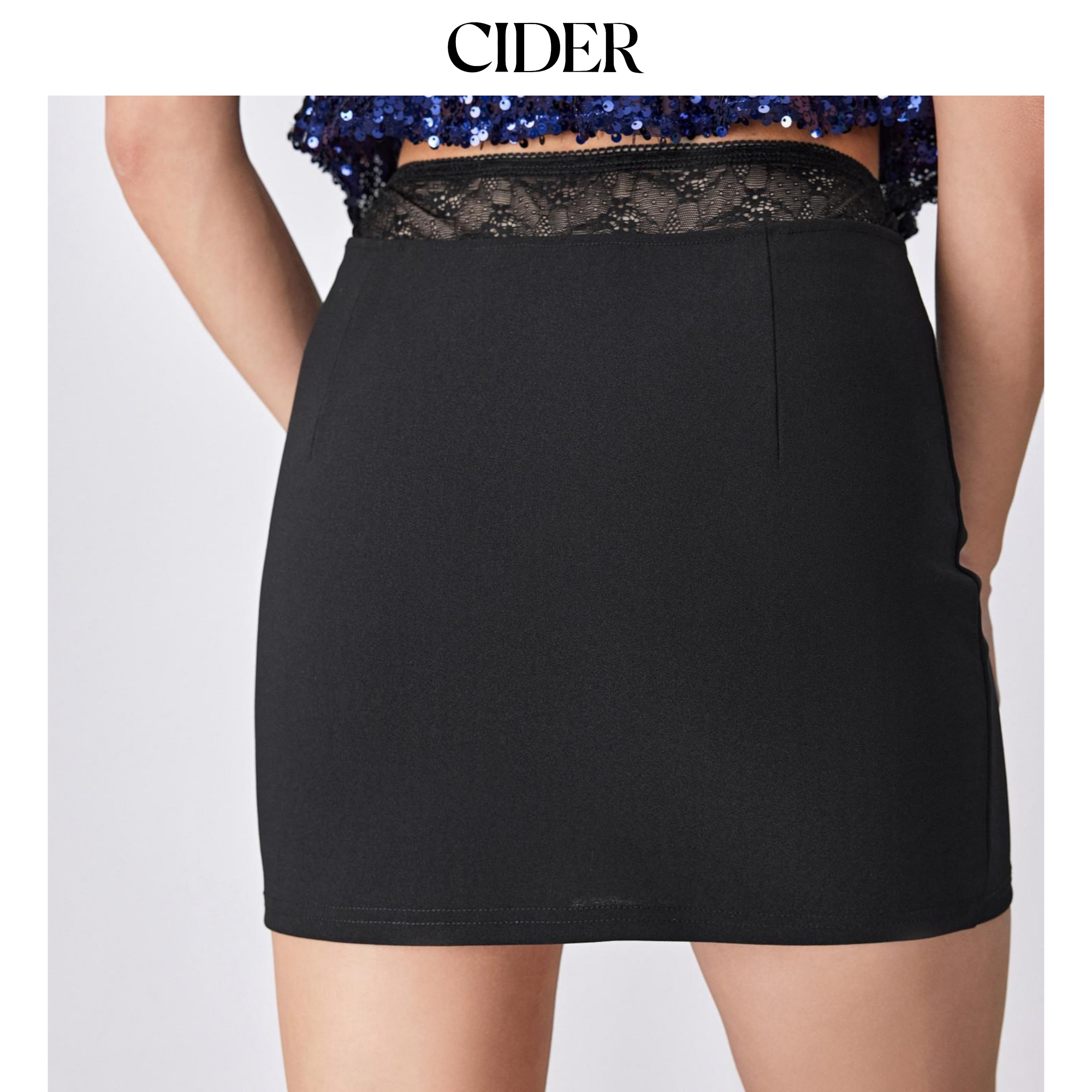 CIDER 夏季女装蝴蝶结蕾丝边中腰迷你半身裙107181147