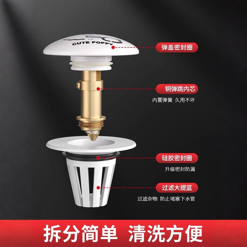 陶瓷洗手盆漏水塞子脸盆弹跳芯下水器水池台盆按压式防臭面盆硅胶