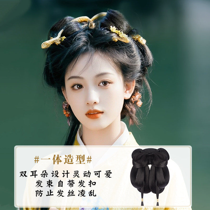 古风汉服假发髻盘发一体式发包古装明制唐风懒人造型垫发全套头饰