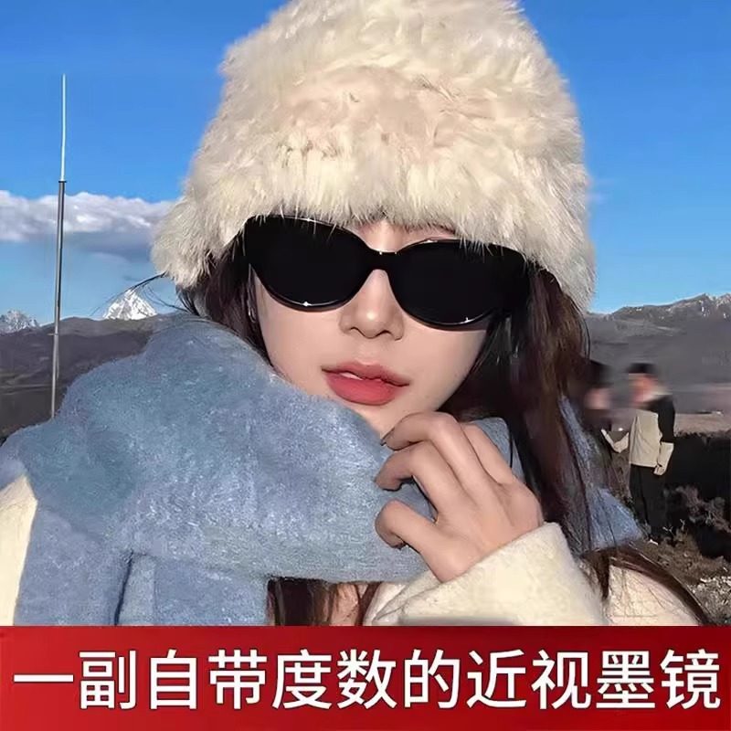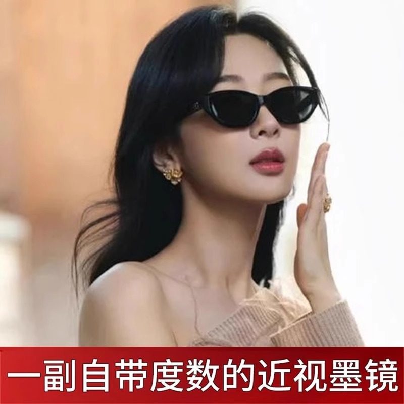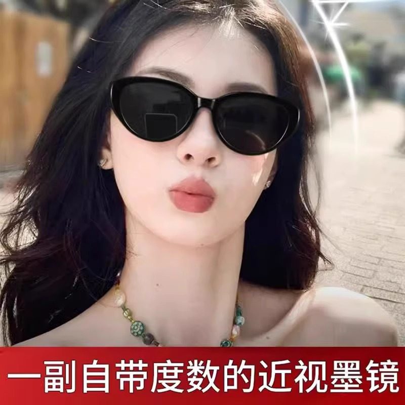 近视墨镜太阳镜女高级感2025偏光可配带度数防紫外线猫眼防晒圆脸