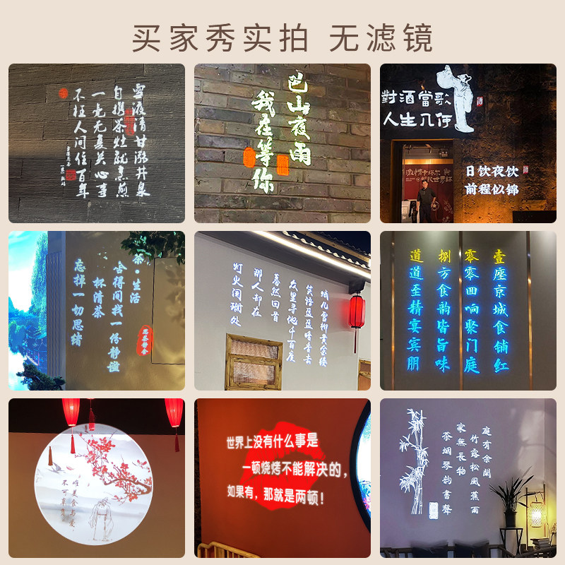 定制文字诗词logo投影灯餐饮店铺背景墙文化墙装饰图案灯片射灯