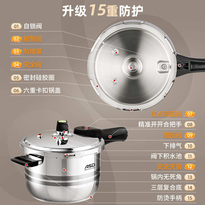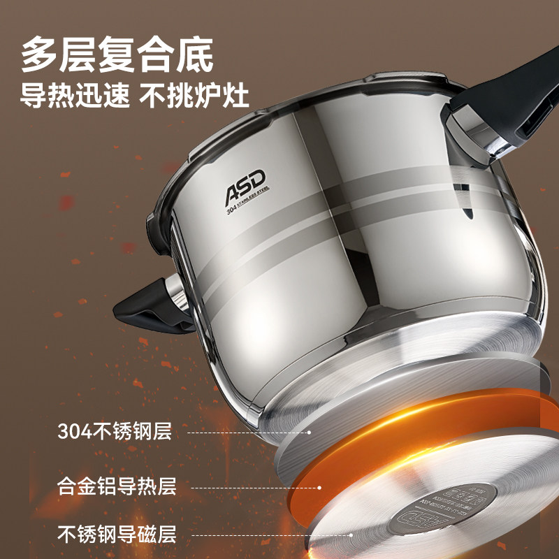 爱仕达官方旗舰店高压锅304不锈钢家用燃气电磁炉通用防爆压力锅