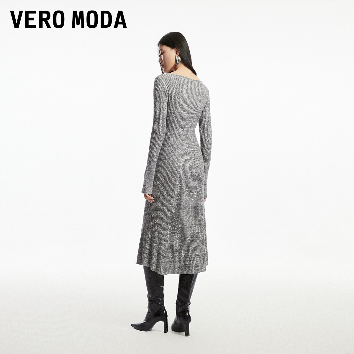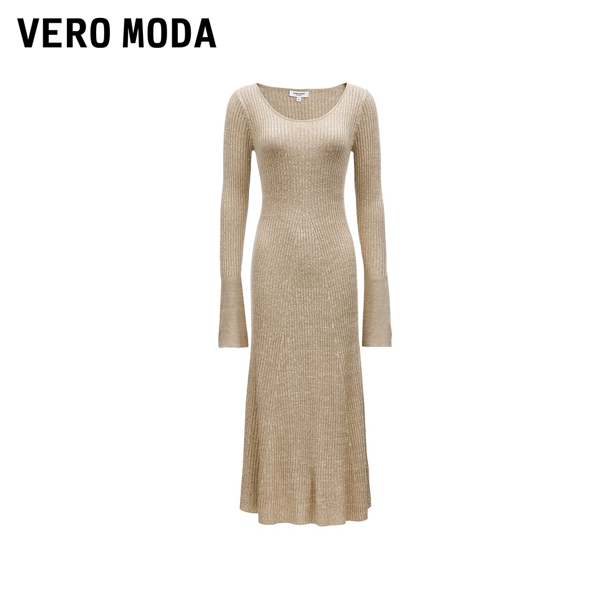 Vero Moda连衣裙女秋冬喇叭袖针织修身长伞裙显瘦优雅324346003