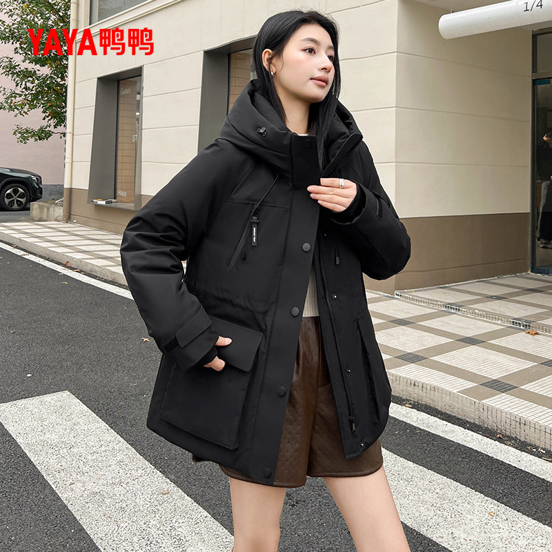 鸭鸭羽绒服女士2025冬季新品中长款连帽韩版保暖加厚收腰厚外套A