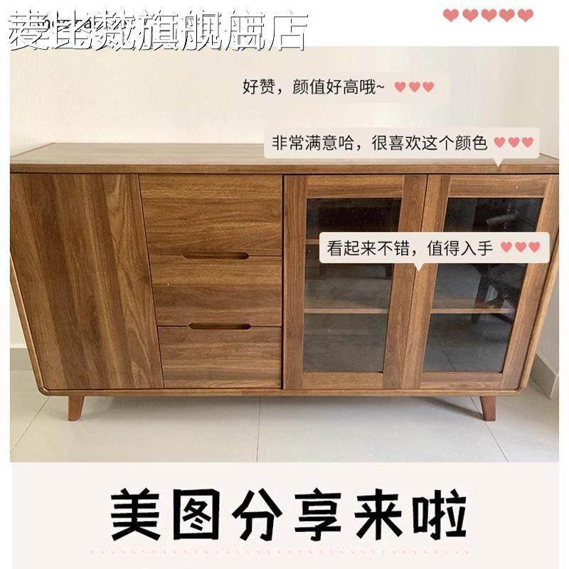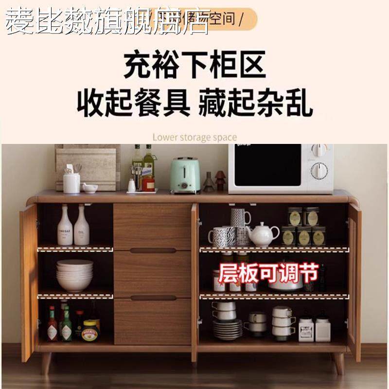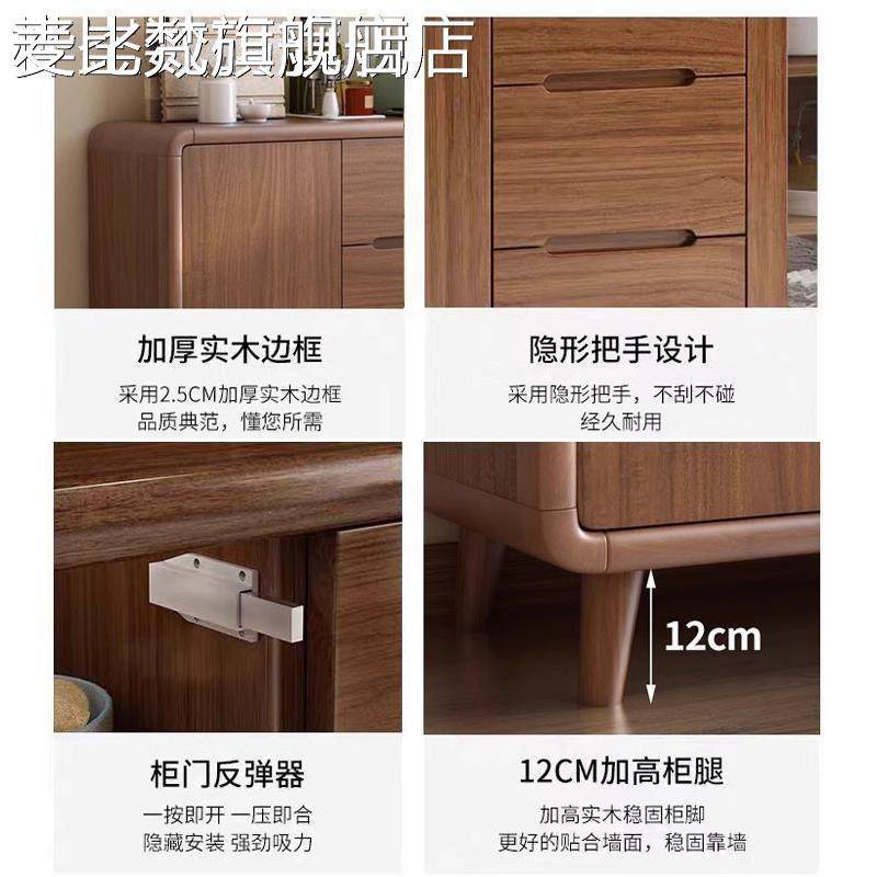 麦比梵中式餐边柜实木框茶水酒柜现代简约厨房储物置物柜子家用客厅靠墙床笠拉车