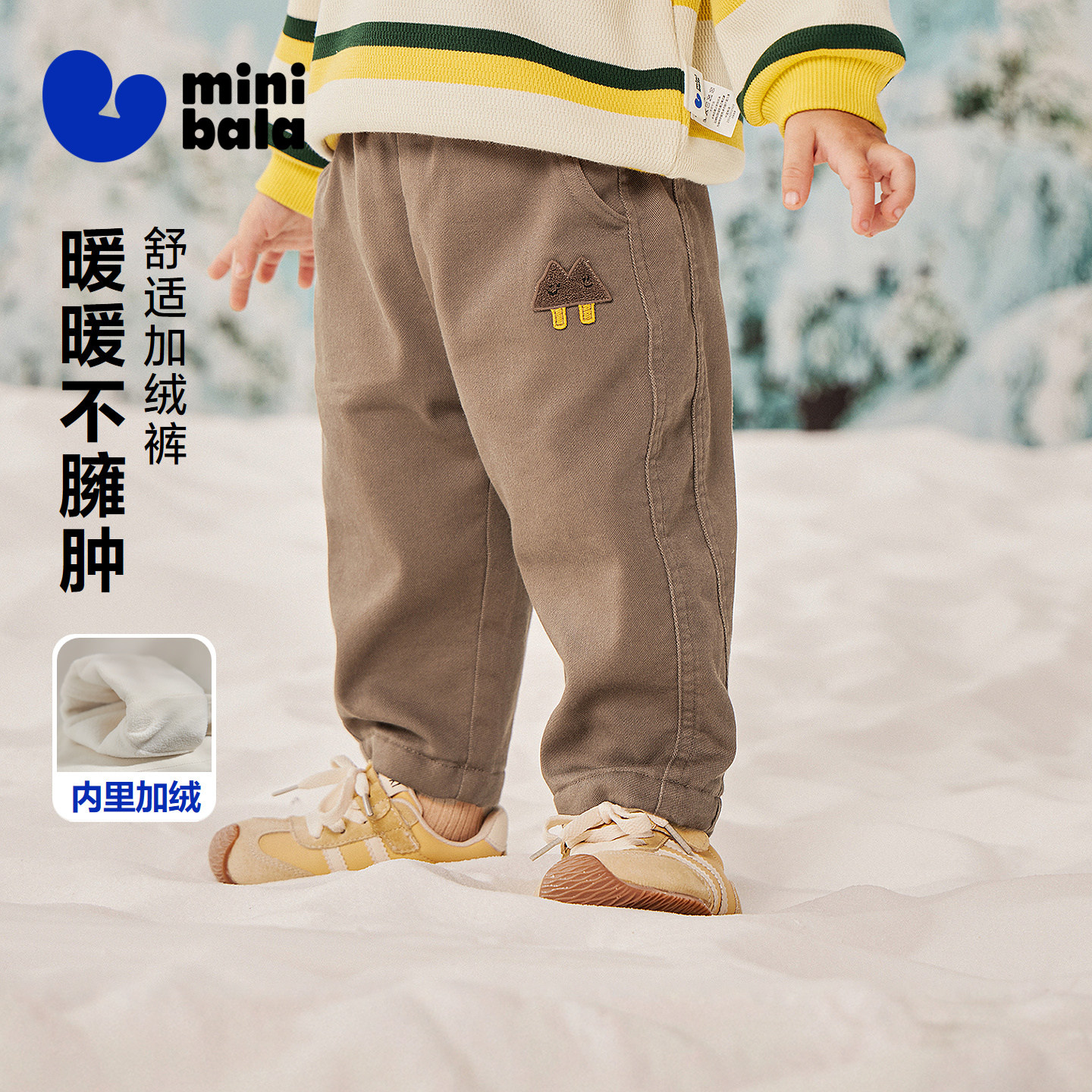 迷你巴拉巴拉男童宝宝长裤2025冬季新品亲肤保暖内里加绒舒适裤子