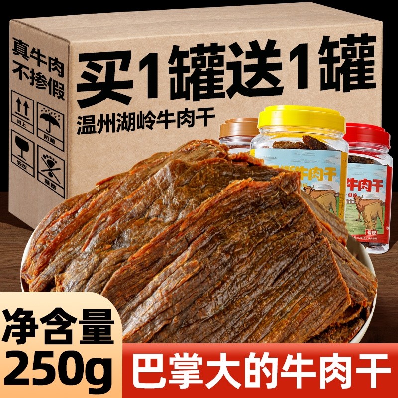 温州大片手撕风干牛肉干湖岭特产五香黑片沙嗲0添加休闲零食罐