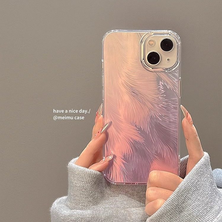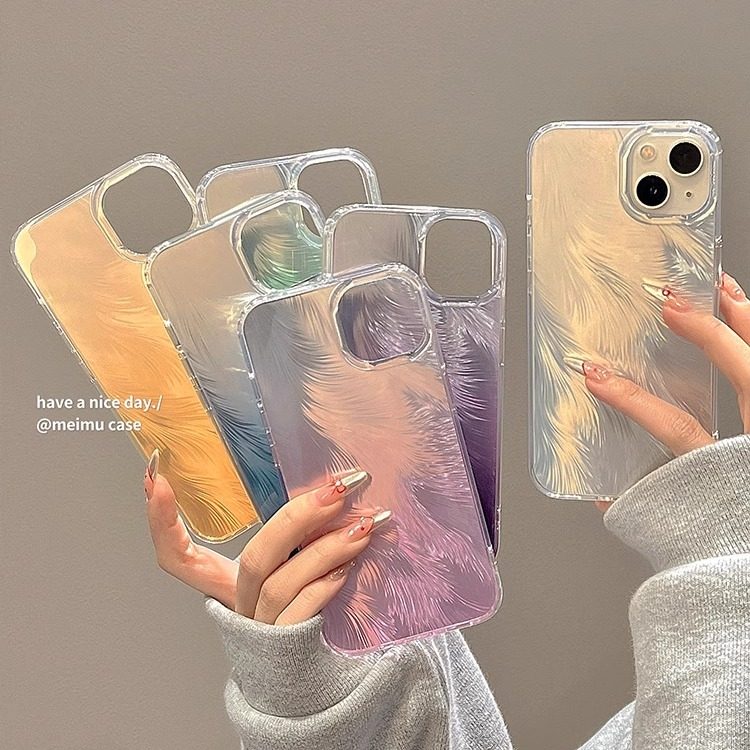 高级感渐变镭射羽毛适用苹果15promax手机壳iPhone14pro新款13pro小众日韩15网红14个性女12创意11全包防摔套