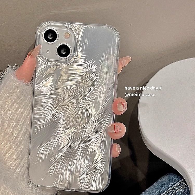 高级感流光羽纱渐变银色适用苹果手机壳