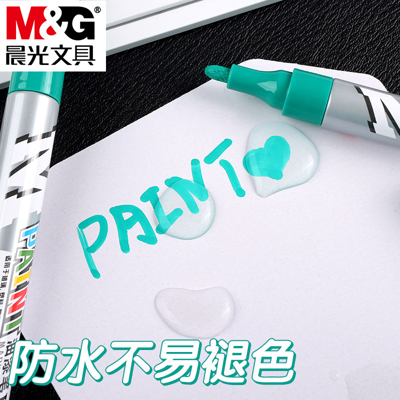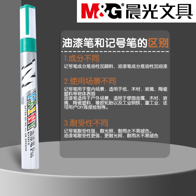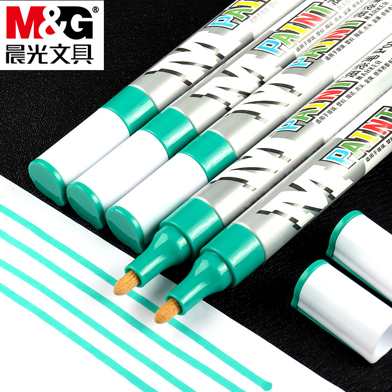 晨光绿色油漆笔防水油性记号笔金属修补补色笔不易掉色标记笔模型家具修补粗头涂鸦笔修复漆面补色专用笔