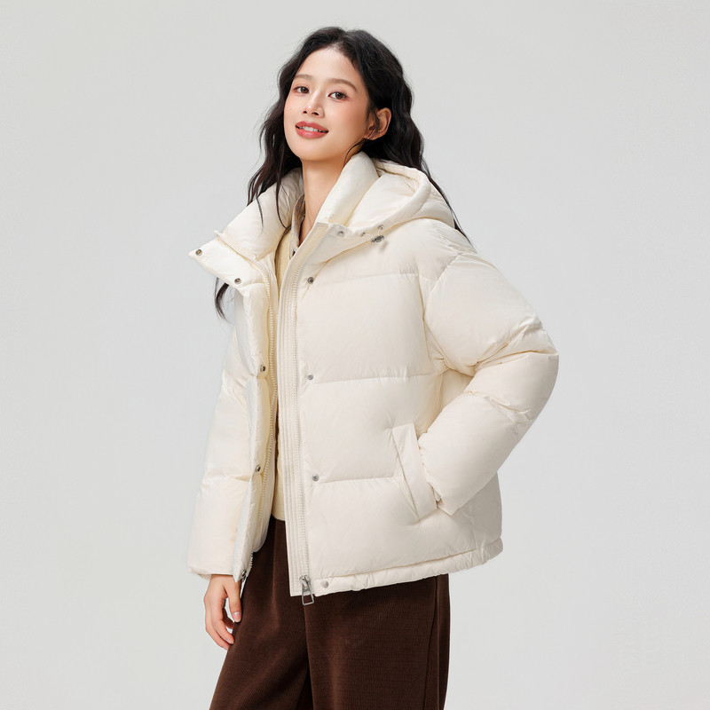 雪中飞2025冬新款泡芙羽绒服短款冬女小个子排骨时尚穿搭连帽保暖