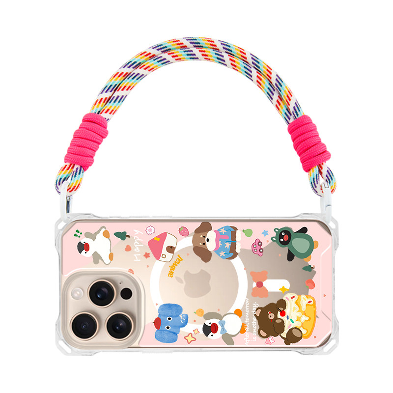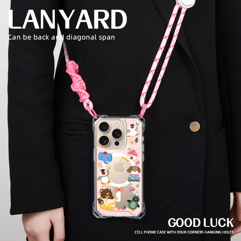 适用华为mate60pro苹果16手机壳17pro透明磁吸p80聚会新款pura70ultra潮流15手提iphone14promax斜跨挂绳腕带