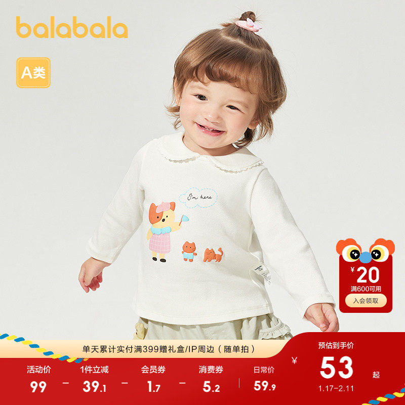 巴拉巴拉童装宝宝上衣婴儿长袖t恤女童衣服可爱萌趣甜美翻领萌趣
