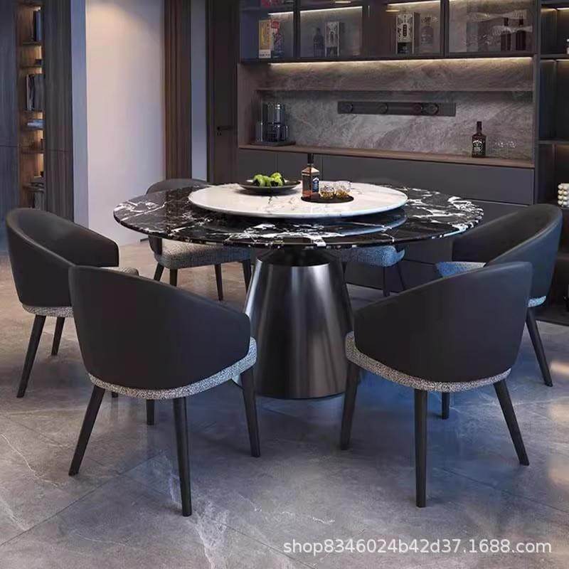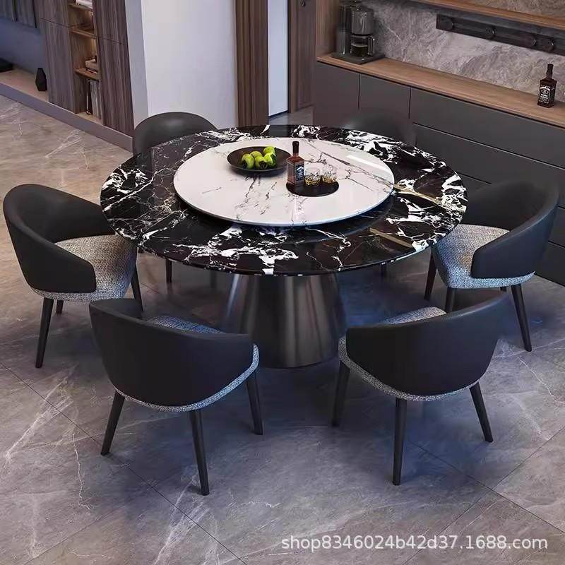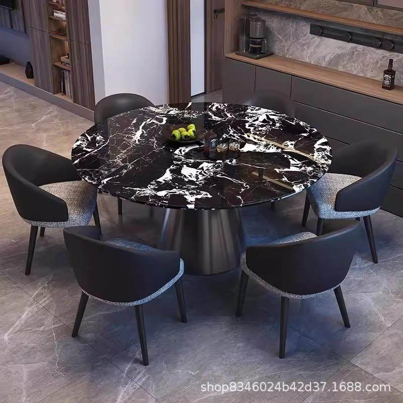 轻奢大理石餐桌椅不锈钢圆桌组合现代简约小户型吃饭圆形桌子家用