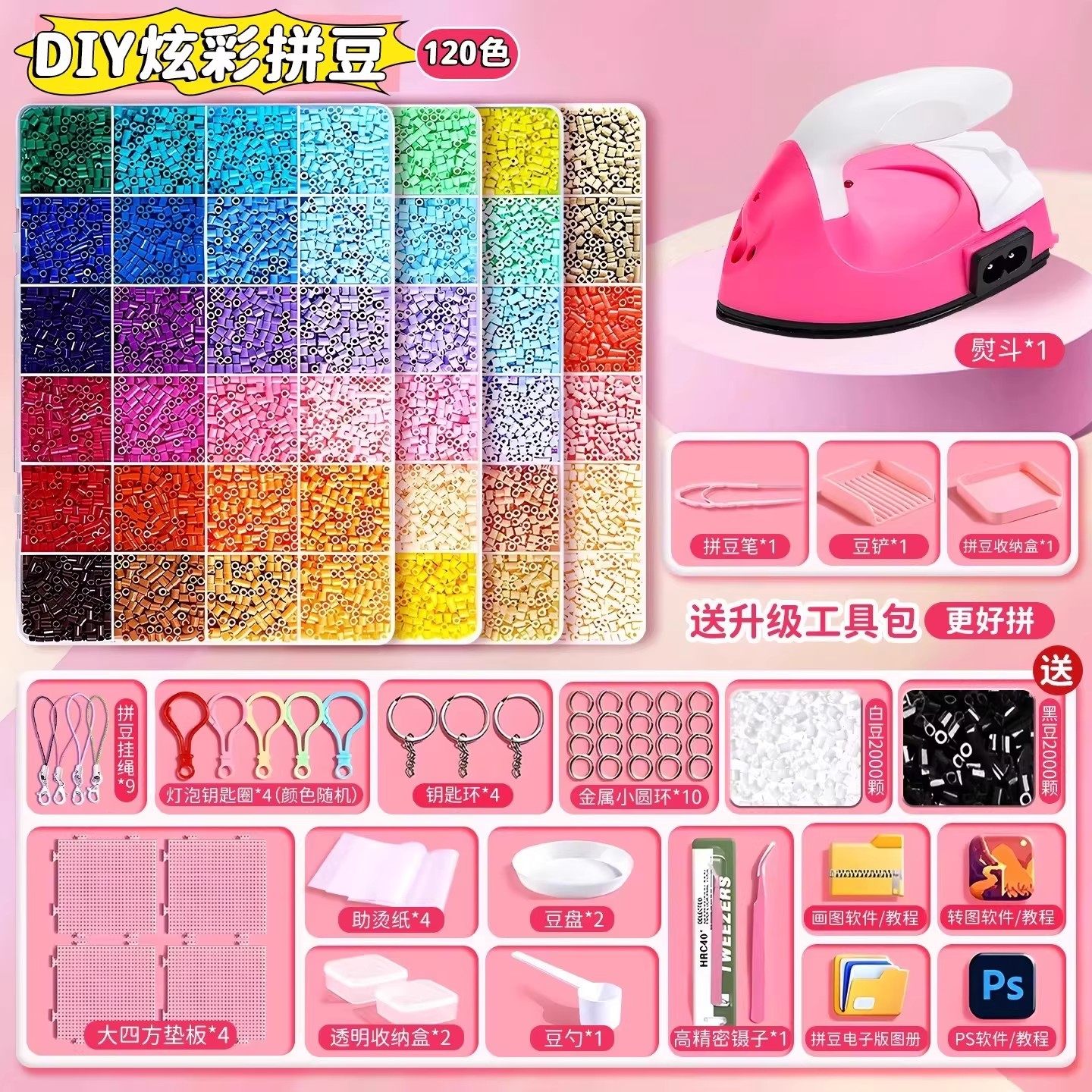 diy手工拼拼豆豆制作套装10岁儿童女孩像素拼图益智玩具熨斗黑白