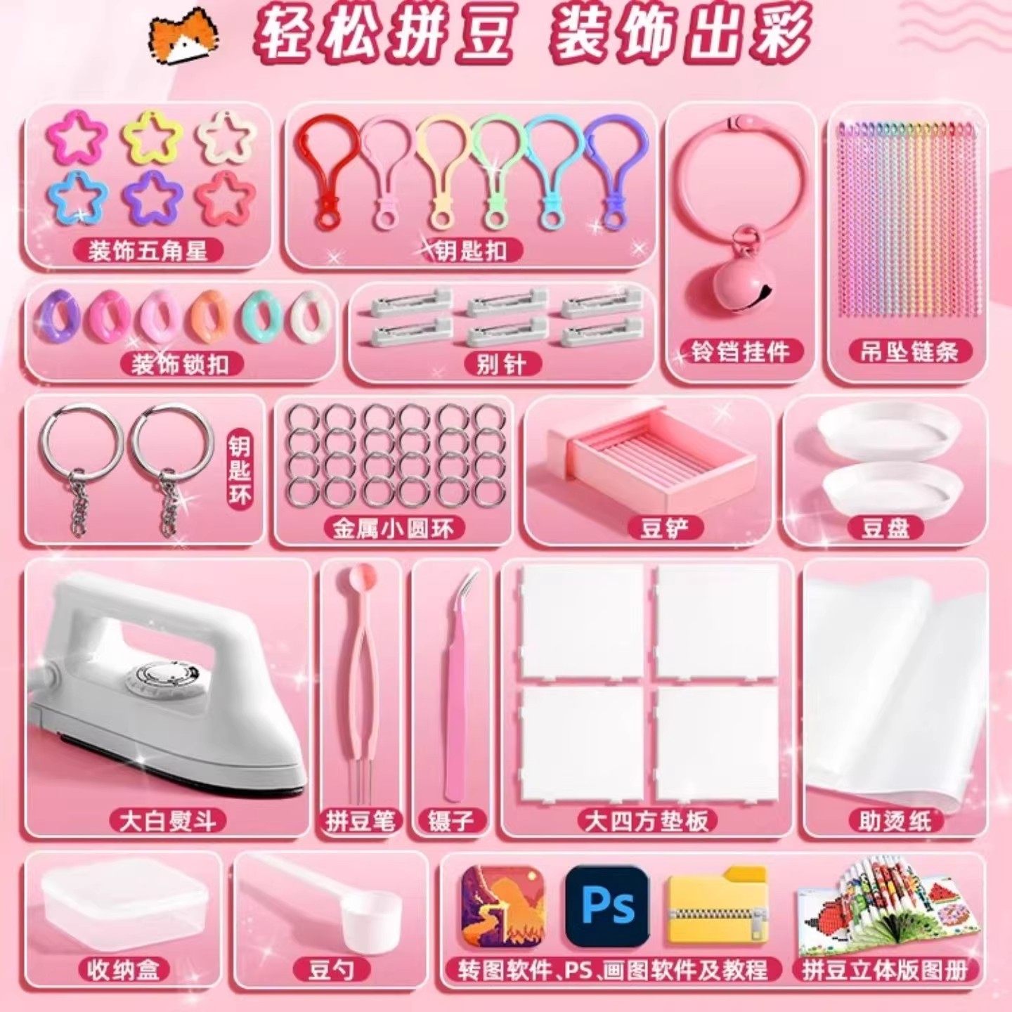 拼豆手工diy材料包套装全套工具立体拼拼豆豆儿童玩具女孩6岁以上