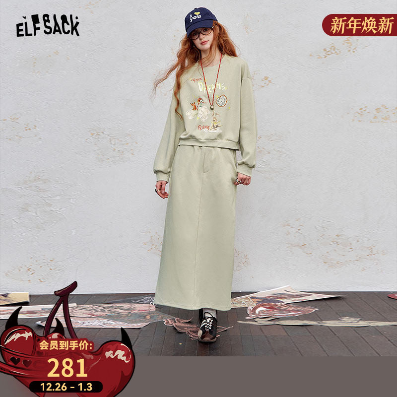 妖精的口袋印花卫衣半身裙两件套装女2025年秋季新款运动休闲时尚
