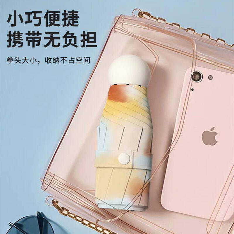 胶囊太阳伞防晒防紫外线遮阳晴雨伞两用女迷你五折叠小巧便携口袋