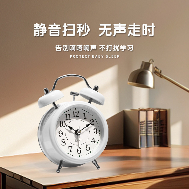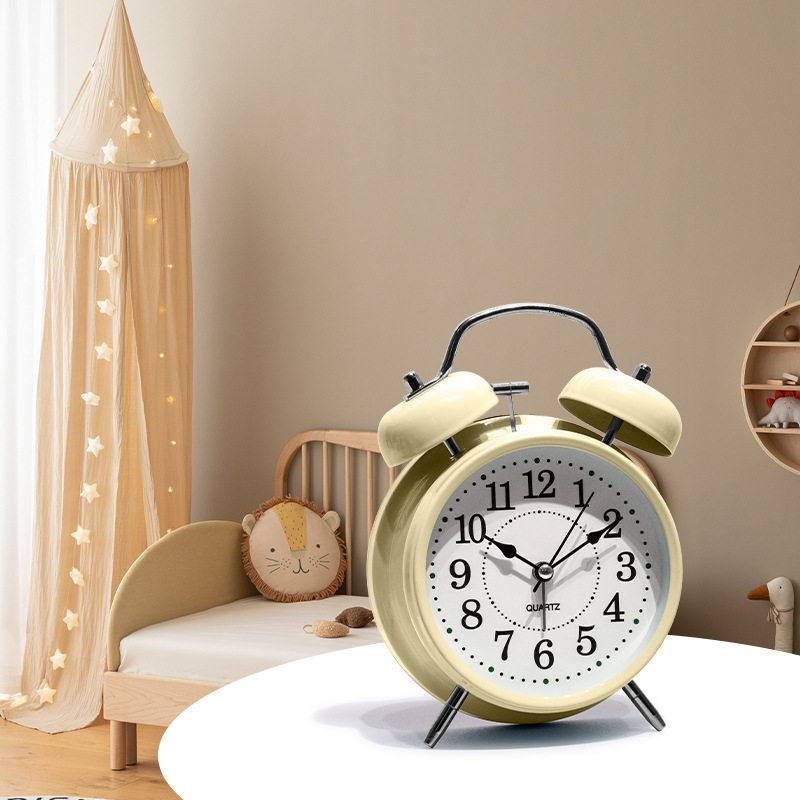 儿童金属闹钟学生静音桌面台钟卡通夜光钟表4英寸打铃起床头座钟