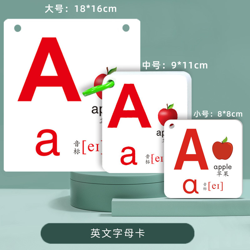 英语26个字母卡片一年级带音标英文abc自然拼读大小写教具幼儿园宝宝儿童小学生启蒙早教学习宝宝加厚环扣式