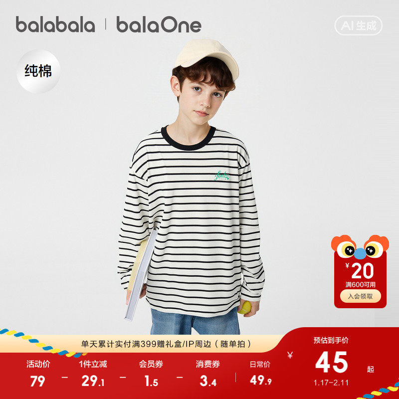 【balaOne】巴拉巴拉童装儿童长袖t恤男女童2026春季新款纯棉速干