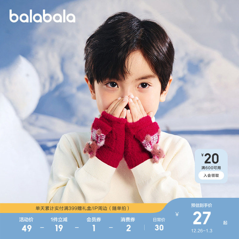 巴拉巴拉儿童手套男童女童半指萌趣可爱卡通造型冬季保暖舒适新款