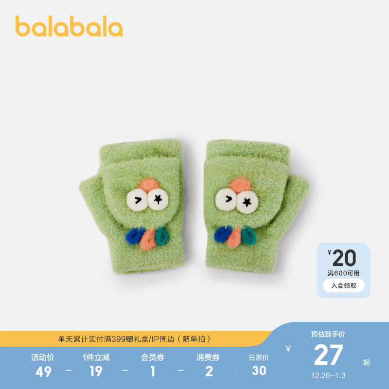 巴拉巴拉balaOne儿童手套男童女童半指翻盖手套保暖2025新款舒适