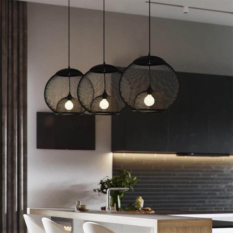 北欧吊灯餐厅创意个性咖啡厅饭店餐饮复古铁丝网状圆形工业风吊灯