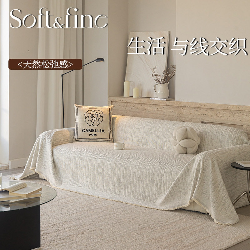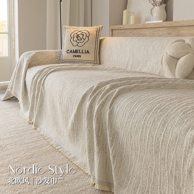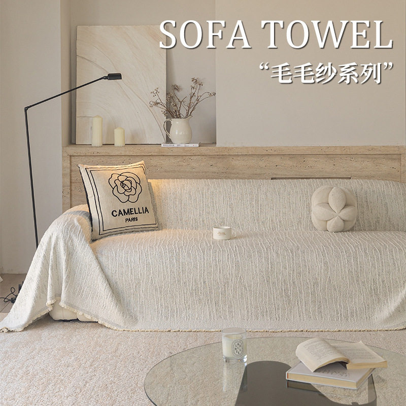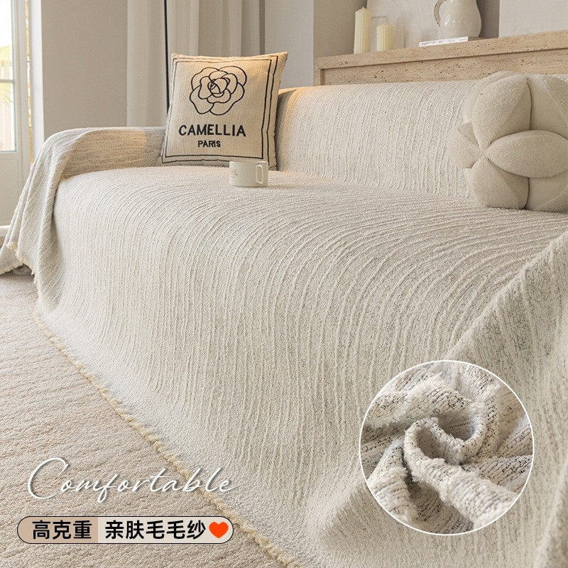 风毛毛纱沙发盖布巾2025秋冬一片式防滑盖毯防猫抓沙发巾氛围白色