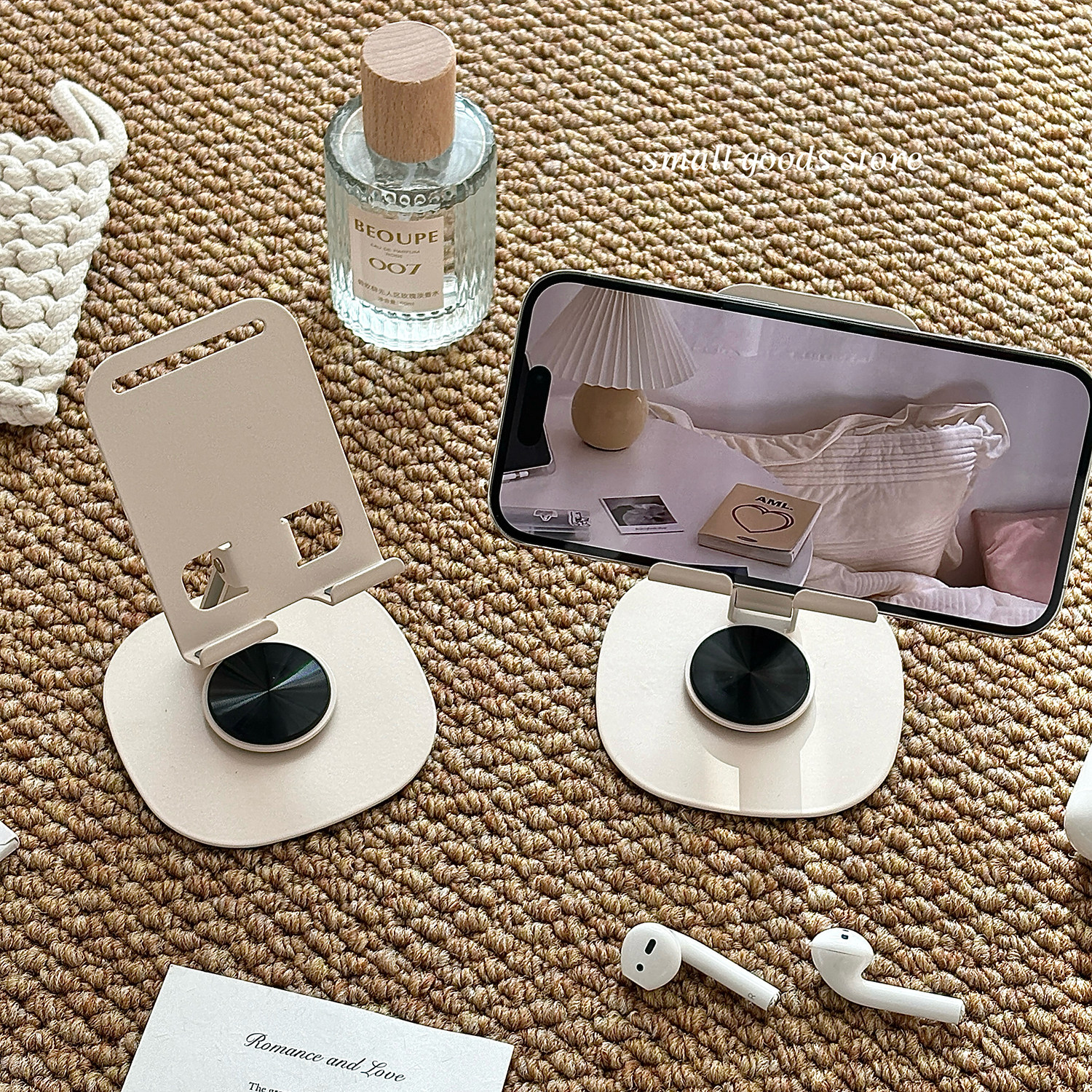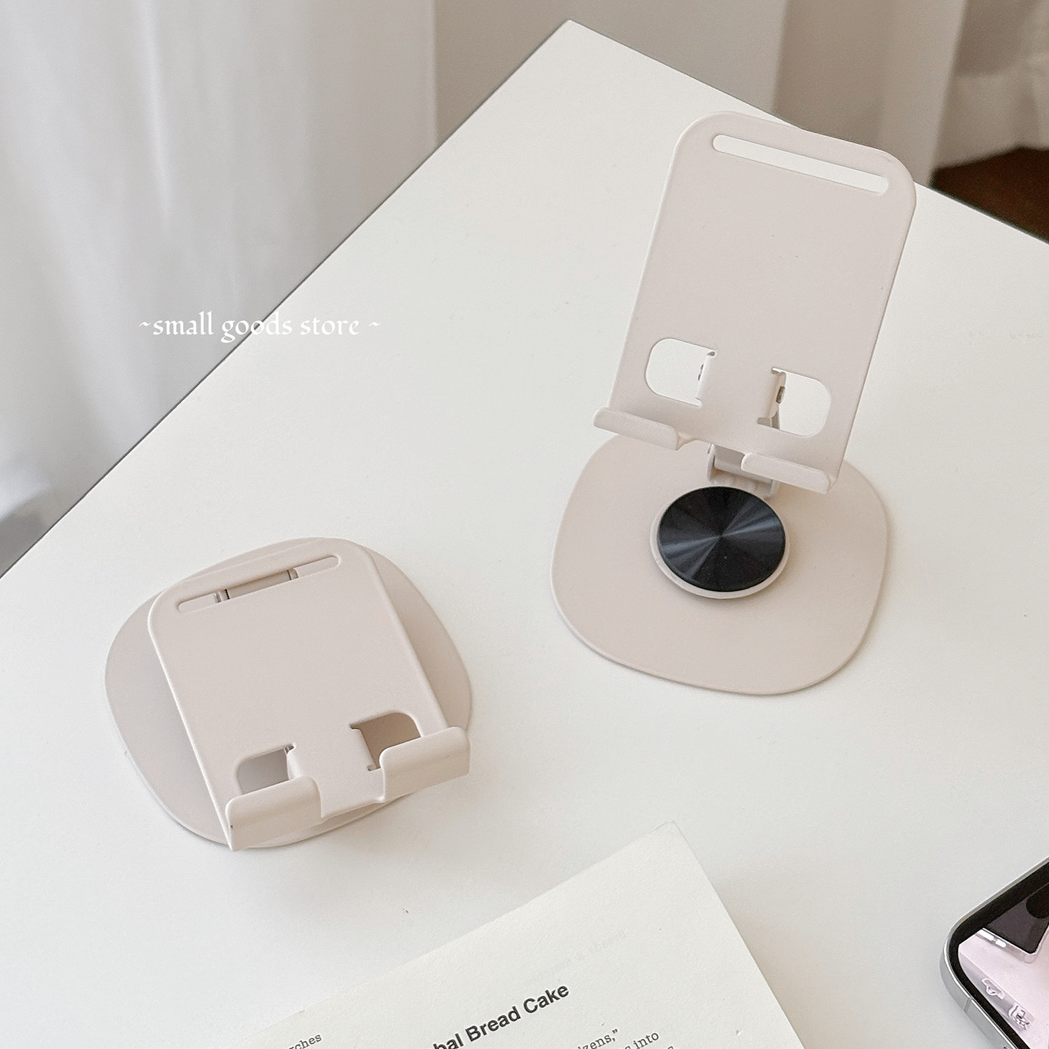 温柔奶油米手机支架ins风桌面可旋转追剧直播学习手机支架可折叠